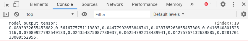 Điều này chứng tỏ mô hình của chúng ta đã được load thành công trong ONNX.js