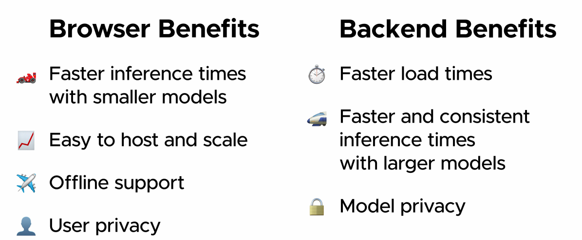 - Ứng dụng quan trọng việc bảo mật dữ liệu người dùng: Nếu như ứng dụng của bạn không muốn gửi dữ liệu lên phía server tập trung để xử lý thì đưa mô hình AI xuống client là một điểm lợi thế
