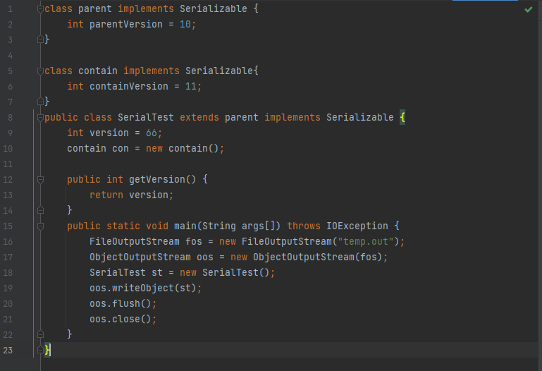 Hãy nhớ rằng, thuật toán serialization chưa viết mô tả lớp cho lớp contain. Đây là nơi để viết mô tả này.