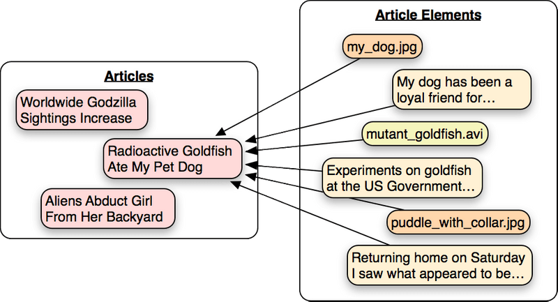 Giả sử các bài viết trong blog tin tức được tạo thành từ nhiều loại phương tiện - khối văn bản, ảnh và video(text blocks, photos and videos).