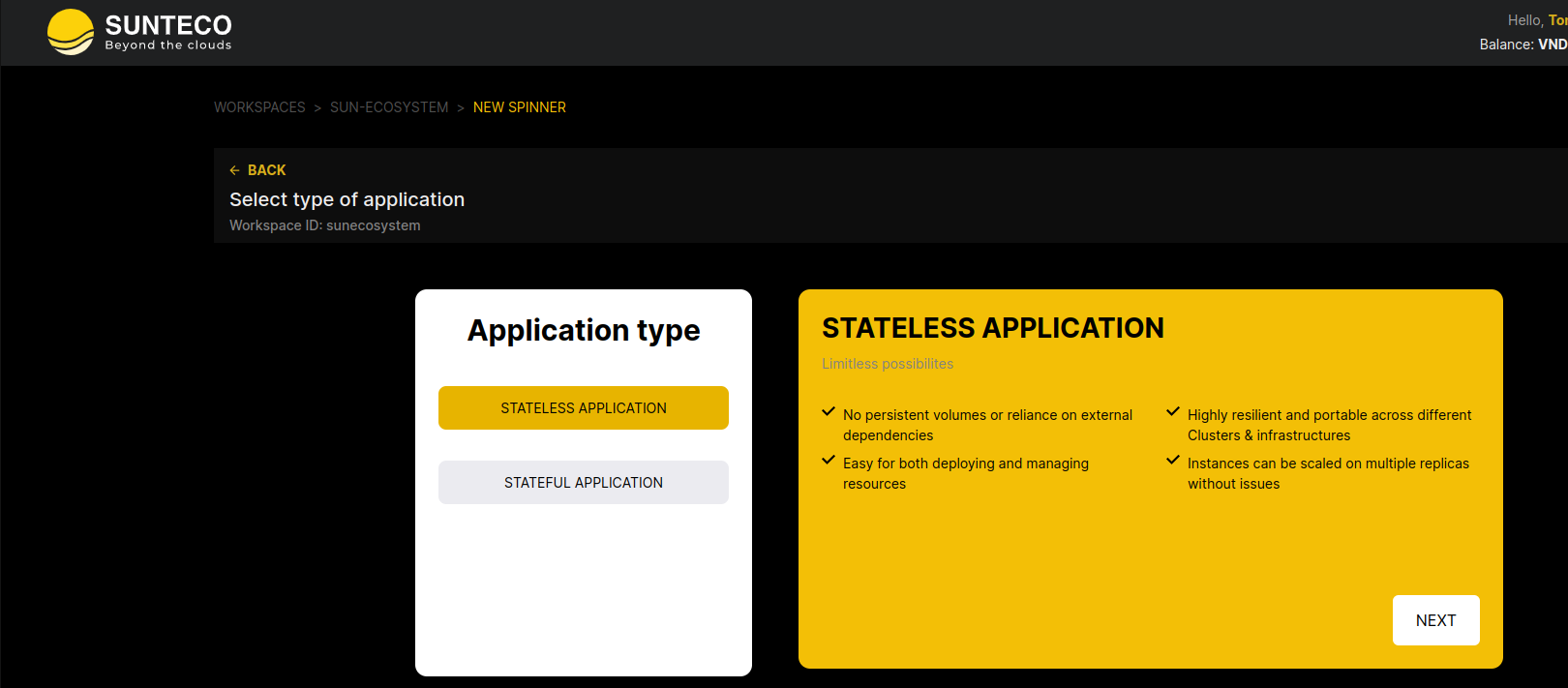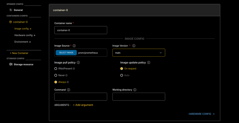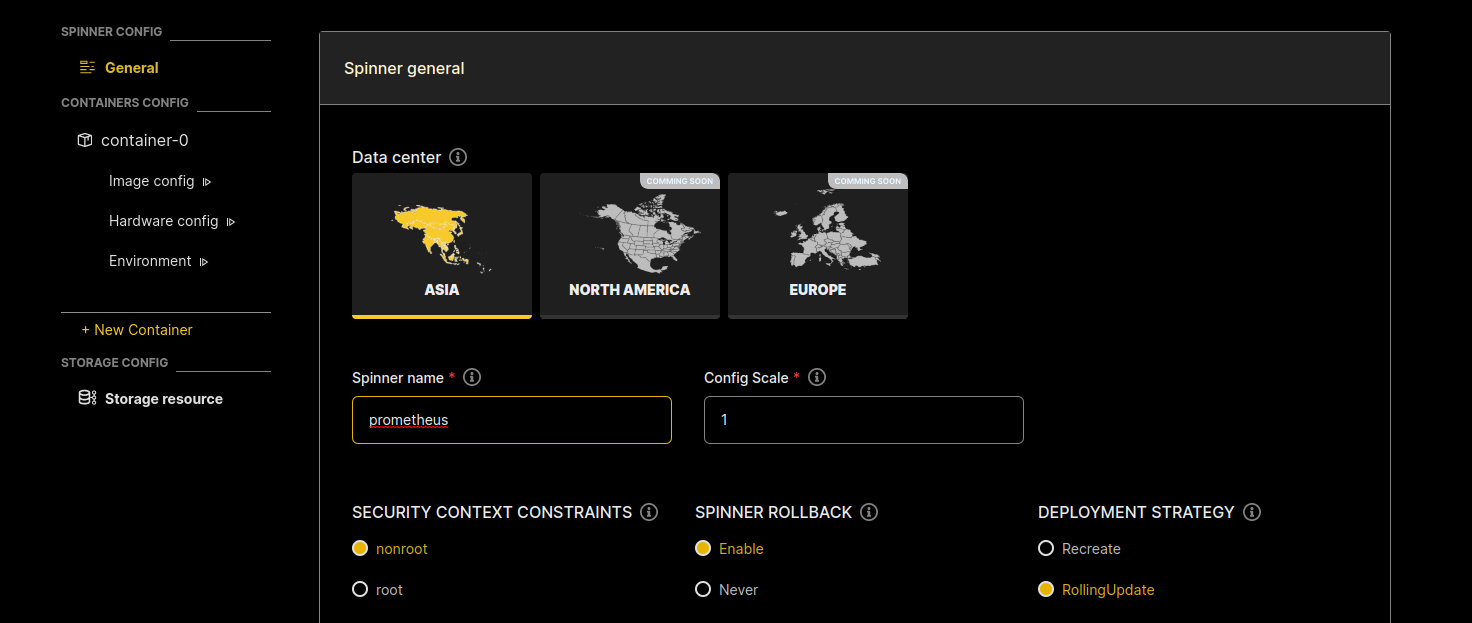 Các steps để tạo prometheus service cũng tương tự như khi bạn tạo mới một application mới trong Sunteco Cloud, điểm khác biết sẽ ở chỗ bạn config.