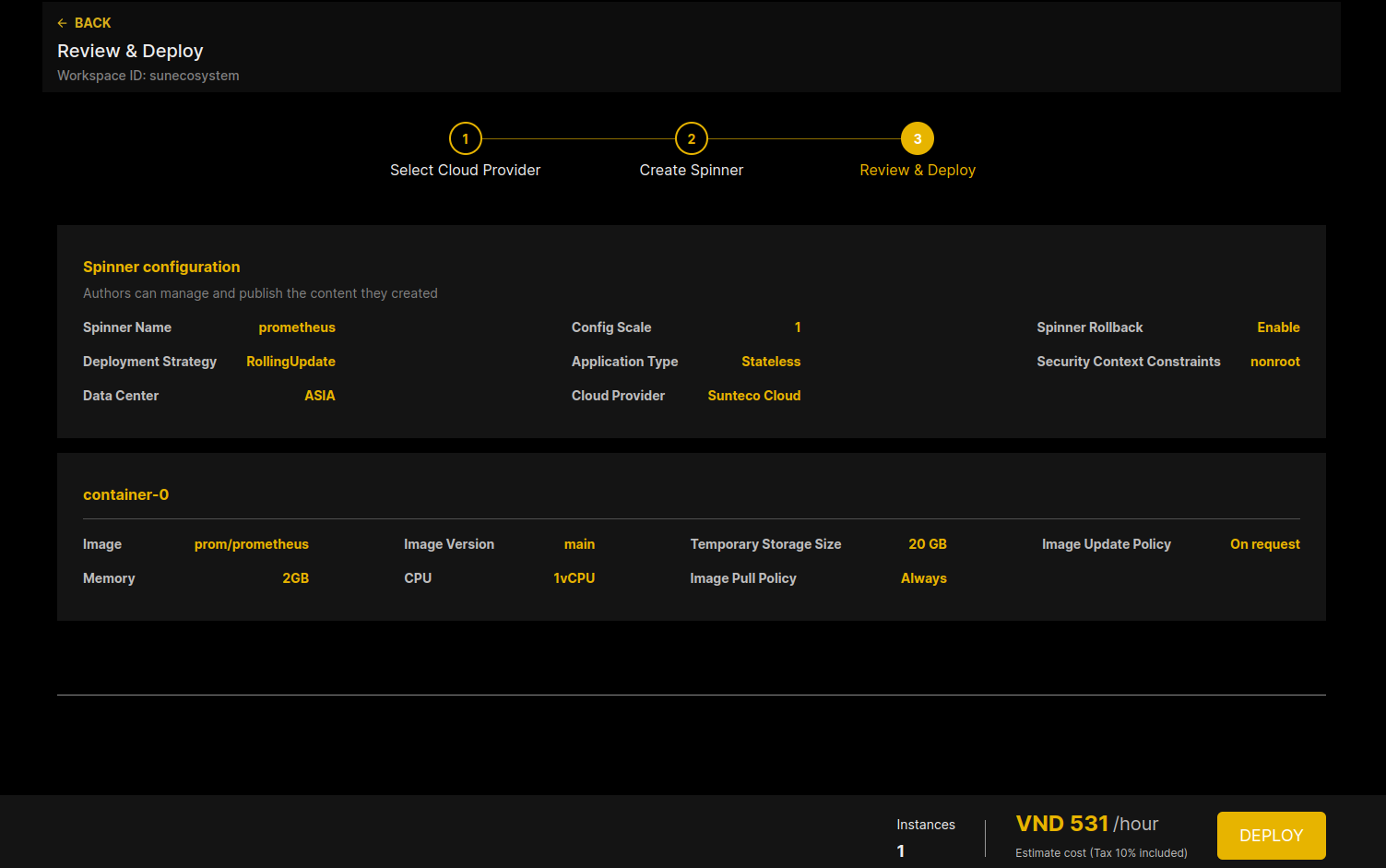 Bước cuối cùng bạn chỉ cần thực hiện click next để review những setting mà bạn vừa thực hiện, và deploy lên cloud