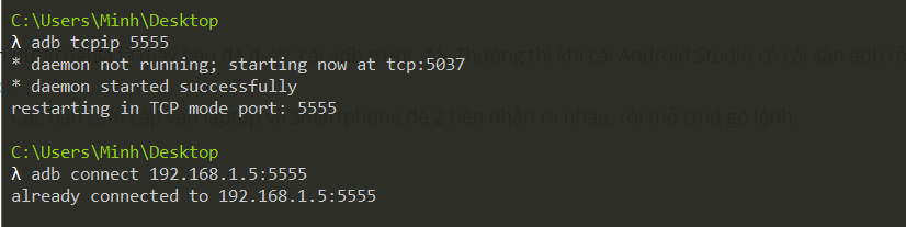 Cái này là để mở port, nghĩa là máy tính mà điện thoại sẽ giao tiếp với nhau qua cổng 5555 này, bạn có thểm thay số nào tùy thích vào.