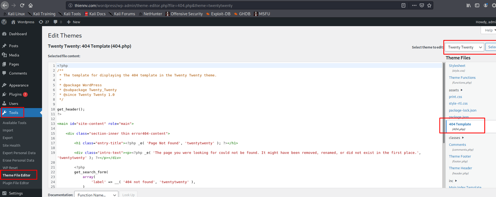 wp-content/themes/twentytwenty/404.phpthành shell code php: