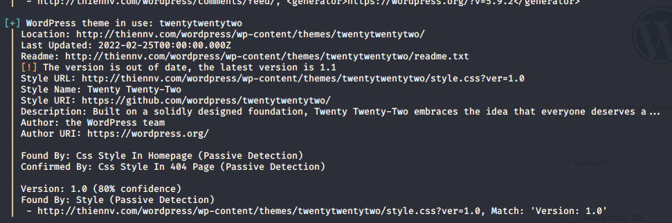 - Kiểm tra phiên bản Wordpress Core, Plugin, Themes... để phát hiện các lỗ hổng bảo mật của phiên bản hiện tại