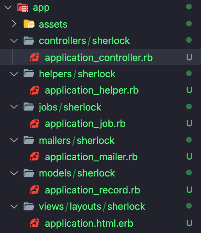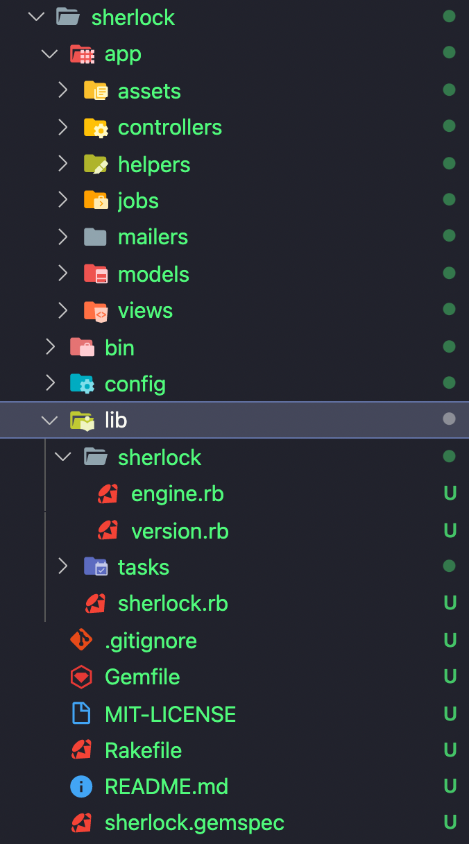 Lệnh này làm 2 việc: tạo folder sherlock (cùng cấp với app, config, ... của main app) chứa mini engine folder, và thêm gem sherlock vào Gemfile của main app: