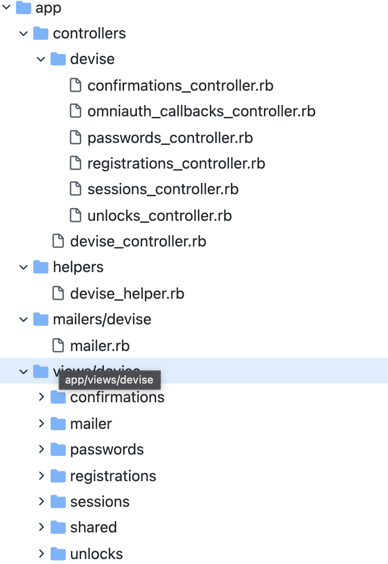 các controller, view, helper, mailer đều được define sẵn và sử dụng ở main app như cách ta thường làm với devise: mount routes, include devise trong model => hoàn thành phần authentication với đầy đủ routes, controllers, views, ...
