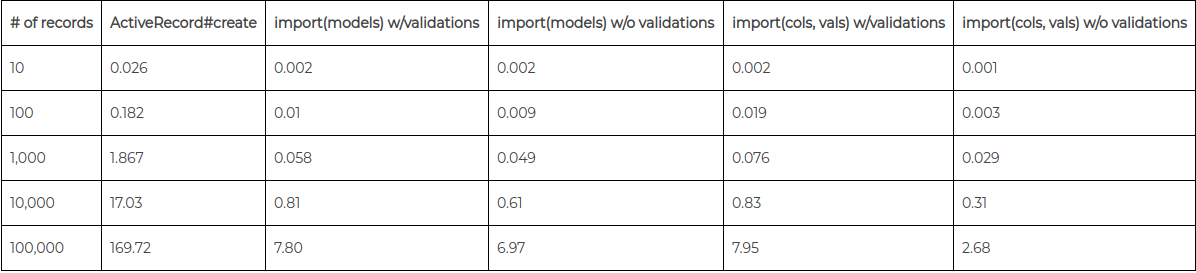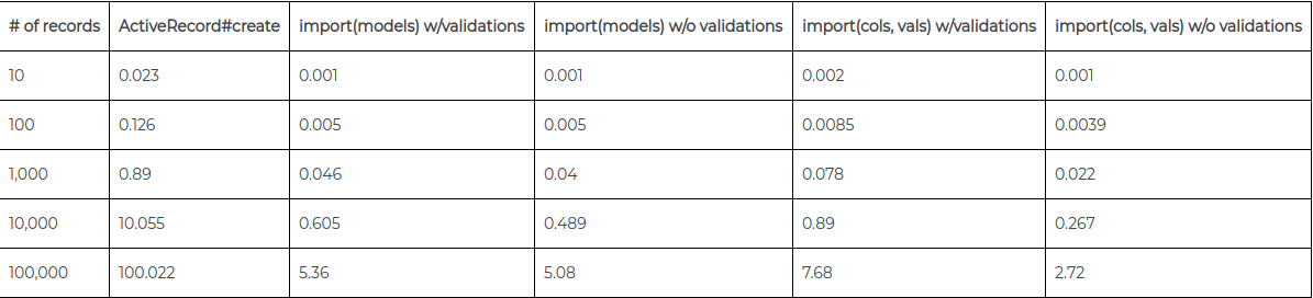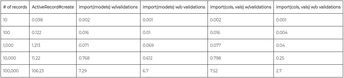 Chào các bạn! Hôm nay mình xin giới thiệu các bạn một giải pháp khá đơn giản trong Rails để giải quyết vấn đề tạo dữ liệu hàng loạt(vài trăm ngàn records trên một bảng) đạt hiệu quả cao nhất và thời gian ngắn nhất.