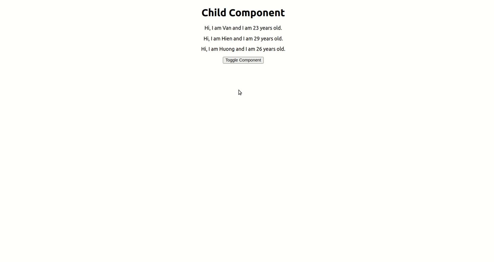 Như vậy ta sẽ có một demo đơn giản là click và button toggle sẽ update state của toggleGrandChild -> state được câp nhật và GrandChild sẽ được show/hide dựa vào state hiện tại của toggleGrandChild.