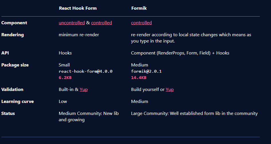 Đây là 1 so sánh ngắn gọn giữa React Hook Form và Formik: