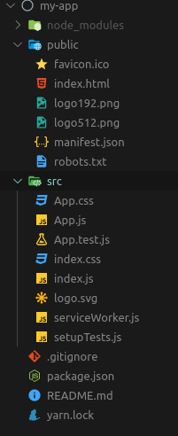 - cd my-app và npm start để run app và cấu trúc thư mục như bên dưới