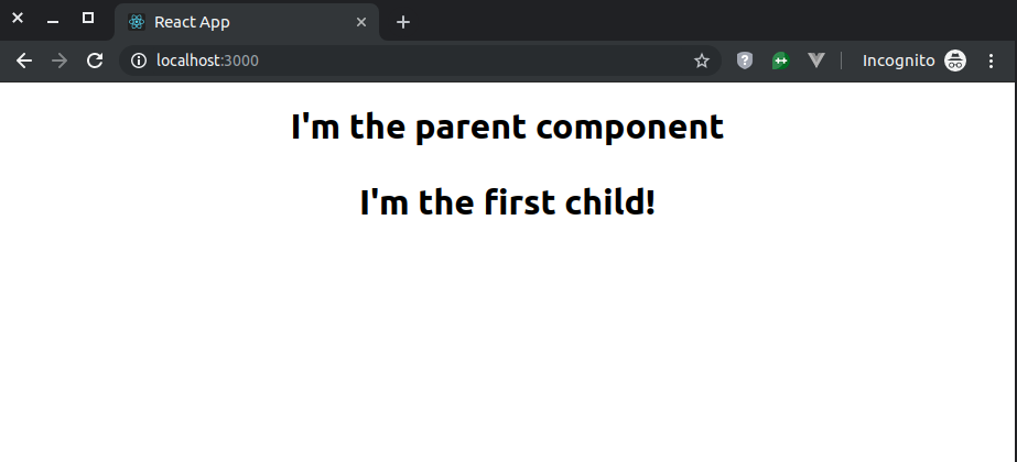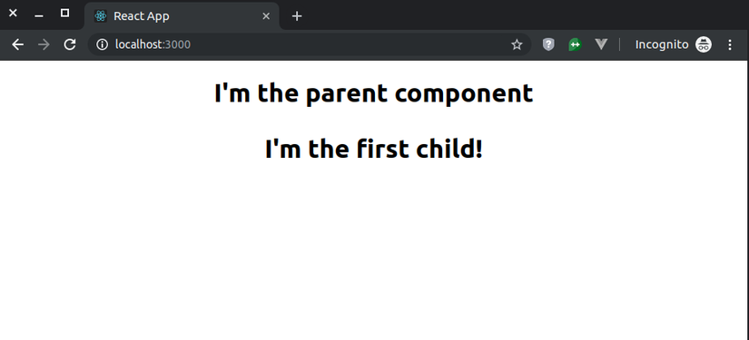 Bây giờ, root file renders parentComponent, bao gồm tất cả mọi thứ trong đó. Hãy cùng xem kết quả: