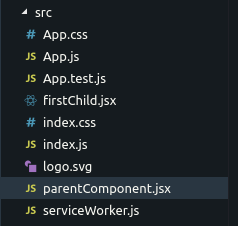Bắt đầu với việc tạo components cha và con. Đầu tiên, chúng ta tạo một file tên là parentComponent và file khác cho con (firstChild) với phần mở rộng .js hoặc .jsx