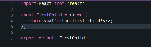 Xong, bây giờ trong file firstChild, chúng ta import React rồi định nghĩa một function ES6 như sau: