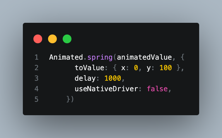 Bản chất của React Native là dùng Javascript nói chung và ReactJS nói riêng để dễ dàng code giao diện ứng dụng, giúp lập trình web dễ dàng tiếp cận với mobile development và xây dựng cross-plaform app một cách nhanh chóng và ít chi phí. Nhưng vấn đề nan giải của React Native chính là bản chất kiến trúc phiên dịch (Asynchronous) của framework không cho phép tạo ra animation mượt mà và tối ưu. Bạn có thể tìm hiểu thêm tại đây : https://reactnative.dev/architecture/threading-model. Vì vậy họ (React Native creators) đã tìm cách gọi animation từ native code và đưa trực tiếp lên React Native code mà không thông qua trình phiên dịch của Javascript. Từ đó chúng ta có thư viện có sẵn Animated. Sau đây mình sẽ trình bày các bước tạo ra một animation đơn giản với Animated.