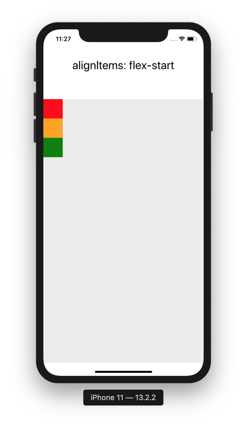 - flex-start: các view con được sắp xếp từ đầu của view cha theo trục cross axis.