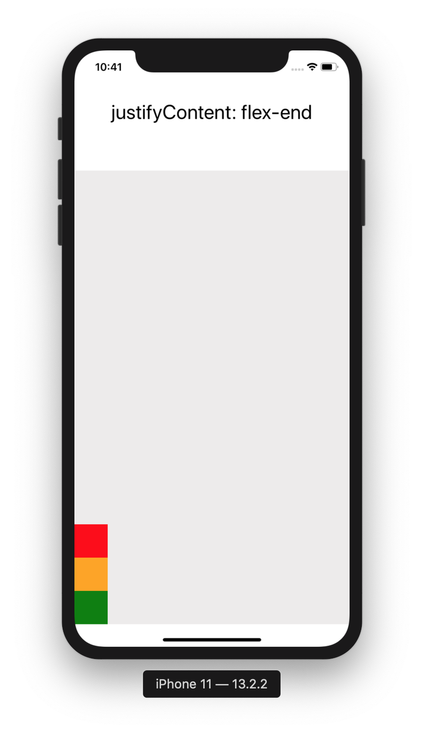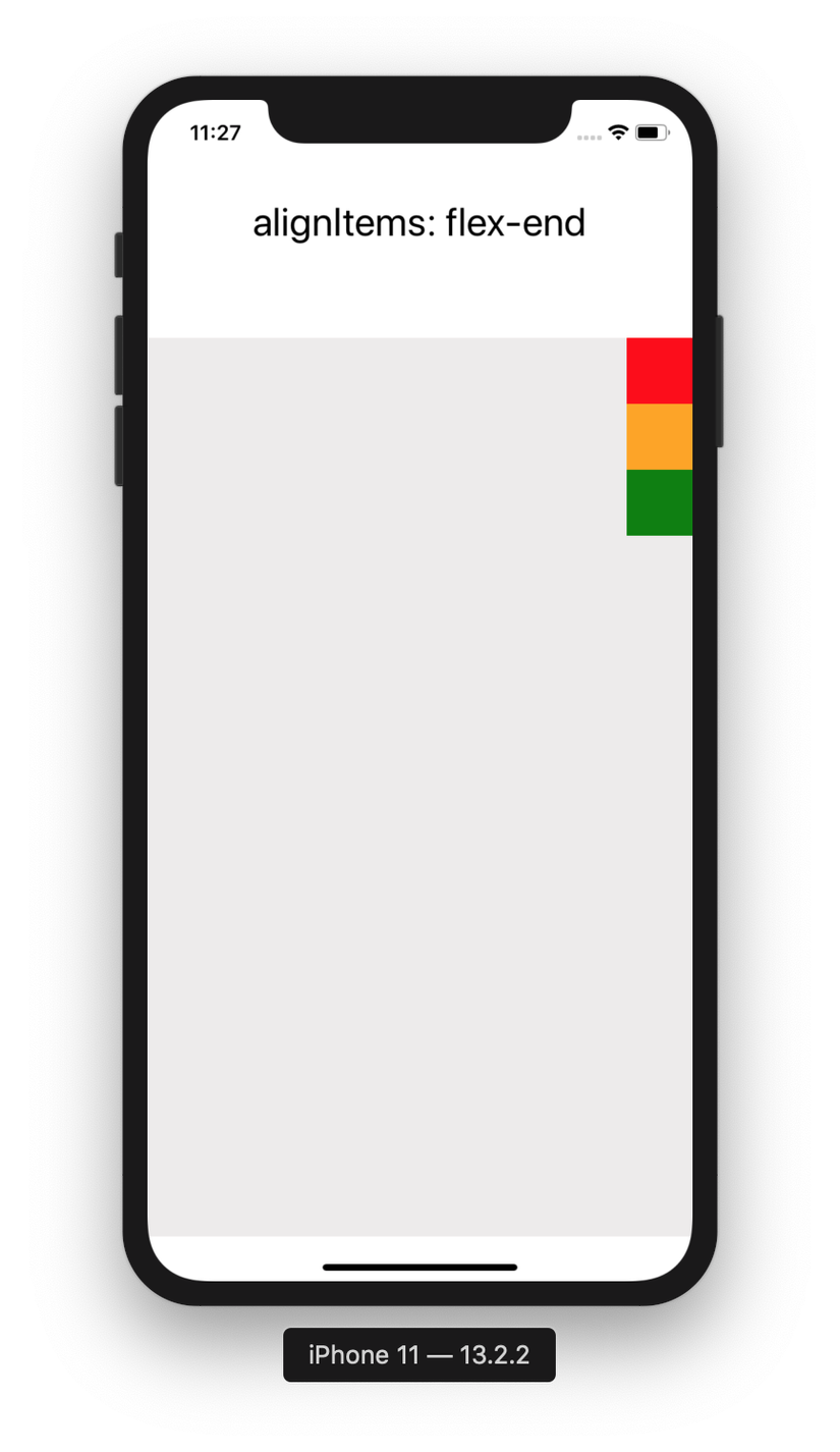 - flex-end: các view con được sắp xếp từ cuối của view cha theo trục cross axis.