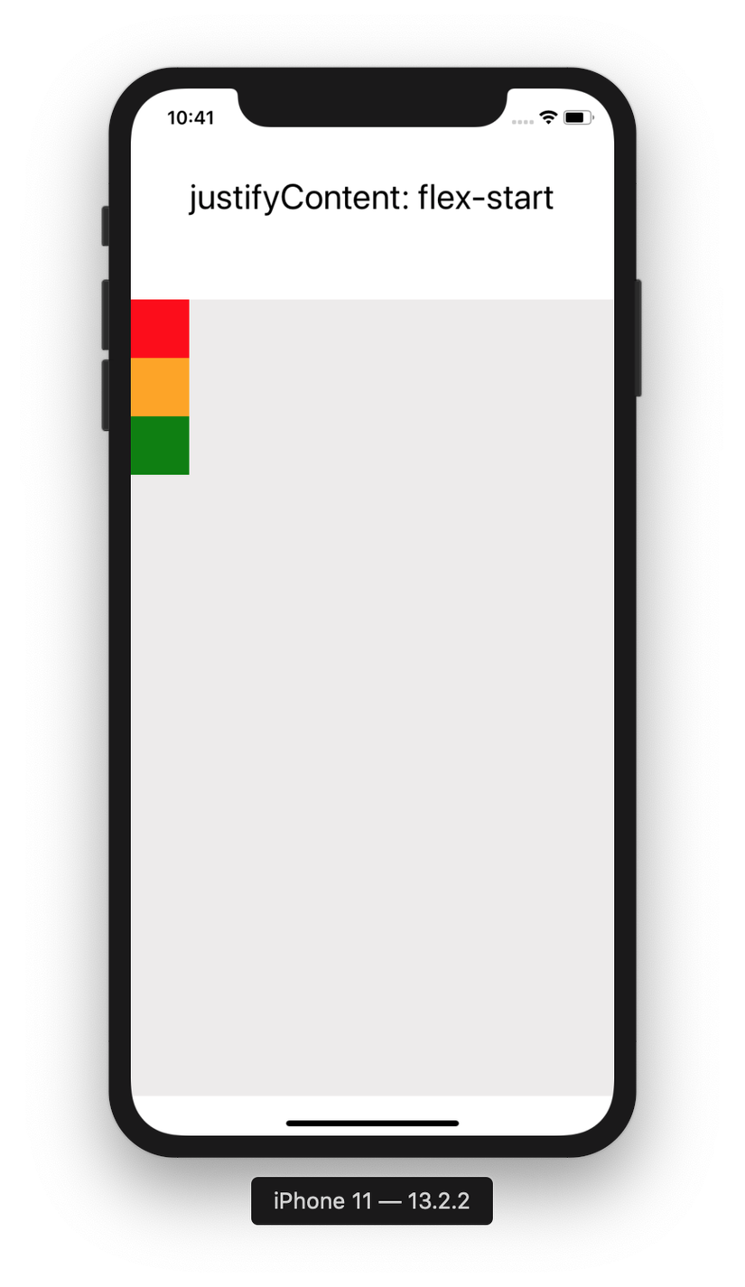 - flex-start (giá trị mặc định): các view con được sắp xếp từ đầu của view cha.