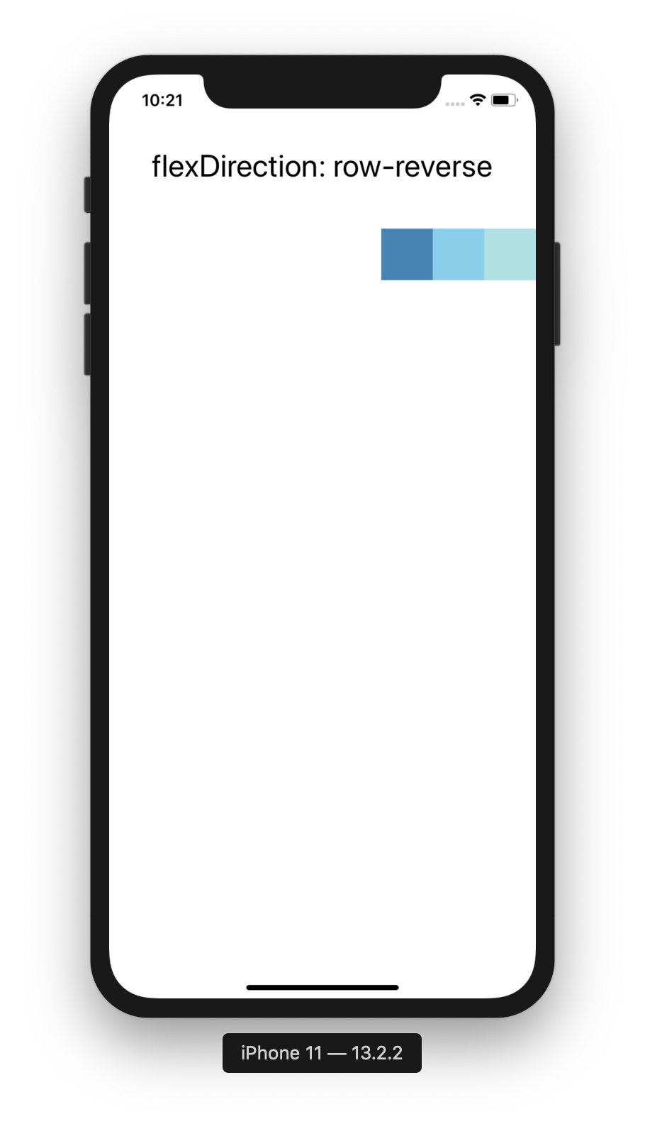 <Text style={{marginTop: 70, fontSize: 30, textAlign: "center"}}>flexDirection: row-reverse</Text>