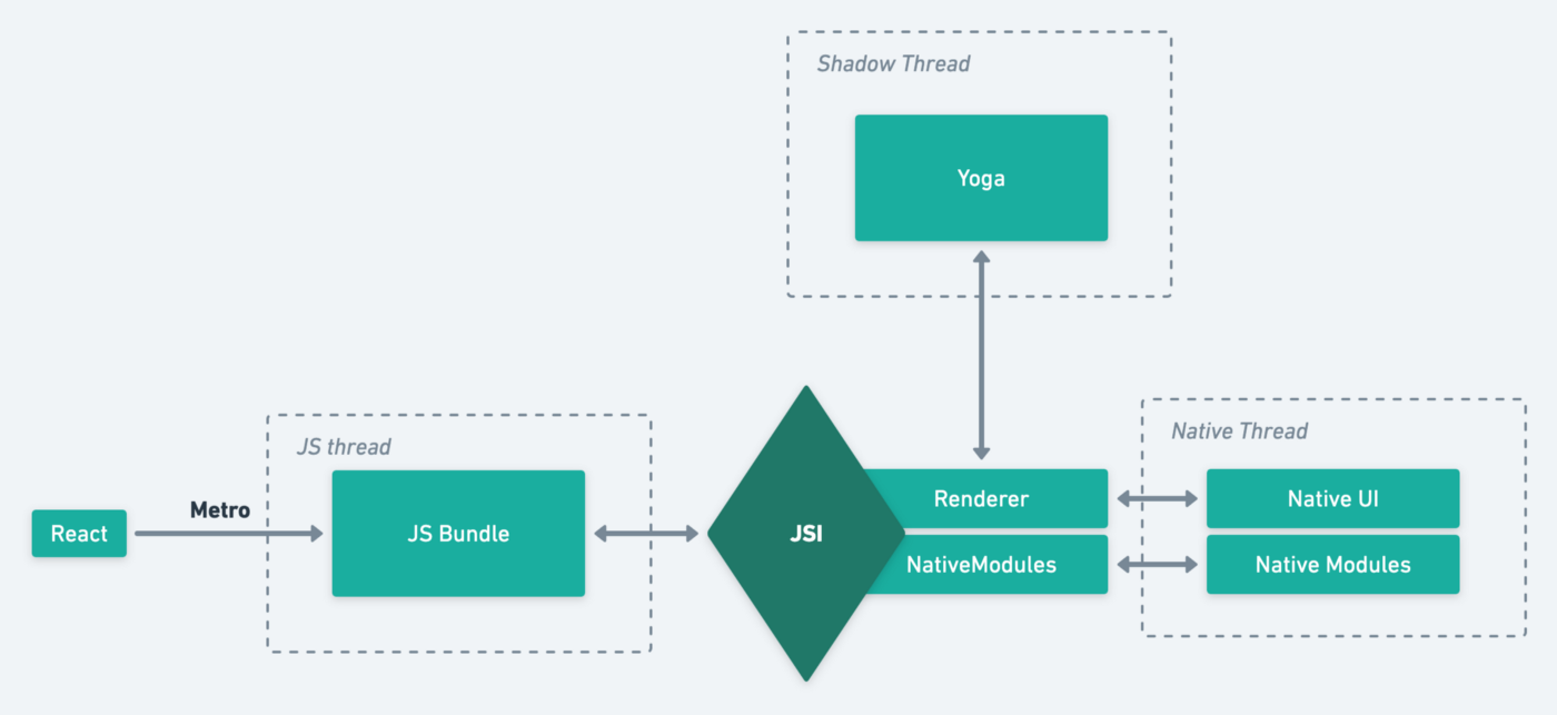 Kiến trúc mới của React Native đã dần loại bỏ Bridge và thay thế nó bằng một thành phần mới có tên là Javascript Interface (JSI).