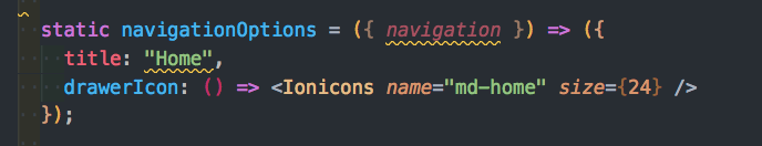 Bây giờ hãy để thêm icon bên cạnh mỗi drawer item. Đối với mỗi component bạn đã gán cho một màn hình, hãy thêm phần sau để gán title cho item đó và icon cho nó. Để xem tất cả các tùy chọn cho các biểu tượng Ionicons, hãy vào đây.
