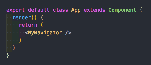 Cuối cùng, hãy render 'MyNavigator' component của tôi trong App component. Bằng cách này, bất kỳ màn hình nào tôi đặt để hiển thị làm màn hình mặc định sẽ là điều đầu tiên tôi sẽ thấy khi mở ứng dụng của chúng tôi.