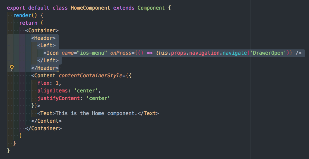 Bây giờ, khi mà bạn test ứng dụng của bạn, bạn sẽ có thể vuốt sang trái và điều hướng navigator đi ra. Nhưng nếu bạn muốn 1 icon bánh menu hiển thị trên screen của mình để người dùng có thể nhấn và drawer navigatior có thể đẩy ra ngoài?