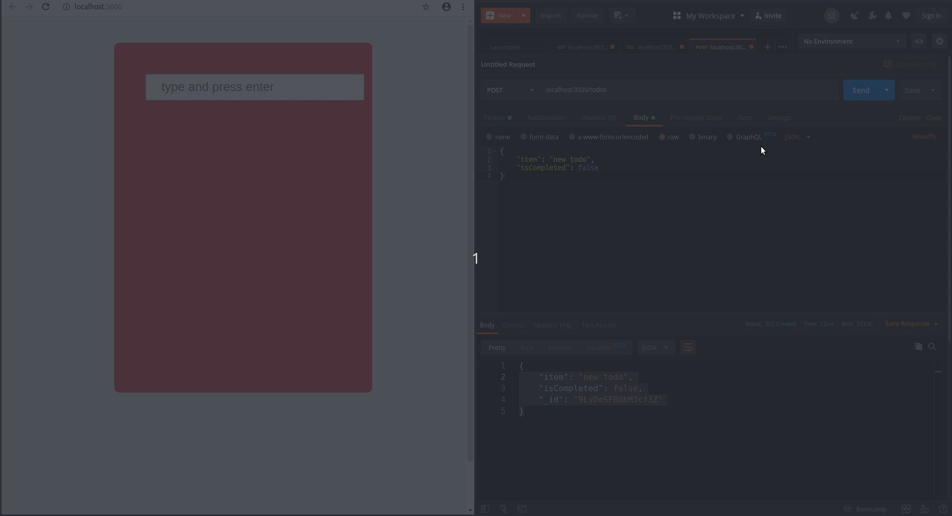 Time to modify our create todo method. The previous method only saved data to localStorage.