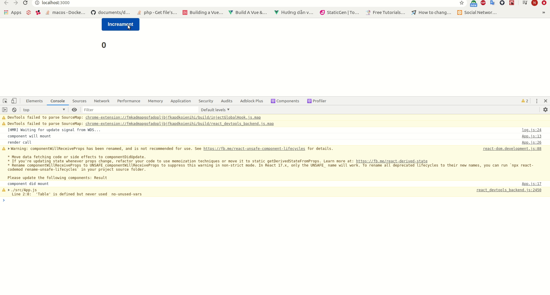 Bạn thử reload lại trình duyệt xem, sẽ thấy hàm componentWillMount được gọi.
