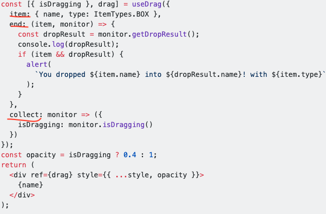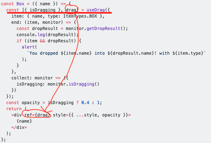 const [{ isDragging }, drag] = useDrag({