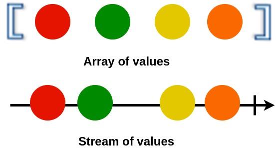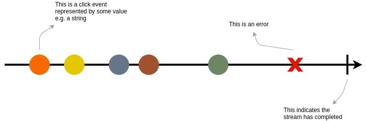 Một stream là một chuỗi các sự kiện tuần tự được sắp xếp theo thời gian. Nó có thể là bất cứ thứ gì, ví dụ như user inputs, sự kiện click hay dữ liệu có cấu trúc. Bạn có thể lăng nghe cũng phản ứng lại nó. Bạn có thể sử dụng các functions để combine, filter hoặc map các streams.