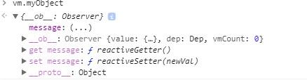 Framework Vue.js đã dùng chính cách thức ở trên để kiểm soát sự thay đổi giá trị các thuộc tính. Các getter và setter này ẩn với người dùng, nó giúp Vue có thể thực hiện các theo dõi độc lập và báo cáo sự thay đổi khi các thuộc tính được truy xuất hoặc thay đổi. Một lưu ý nữa là chế độ console trong trình duyệt định dạng lại getter/setter một cách khác nhau khi chuyển đổi đối tượng data được ghi log bởi vậy bạn cần phải cài đặt Vue Devtools để có một giao diện thân thiện hơn khi debug. Trong ví dụ Vue.js ở đầu bài, bạn hãy bật màn hình console lên, và gõ vào vm.myObject bạn sẽ thấy Vue đã thay đổi đối tượng myObject với các getter và setter: