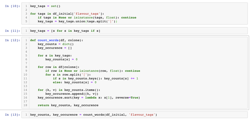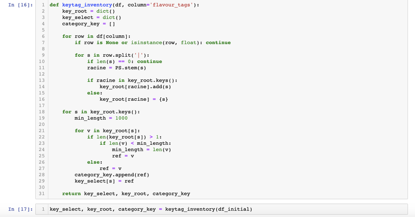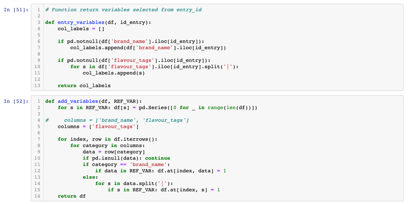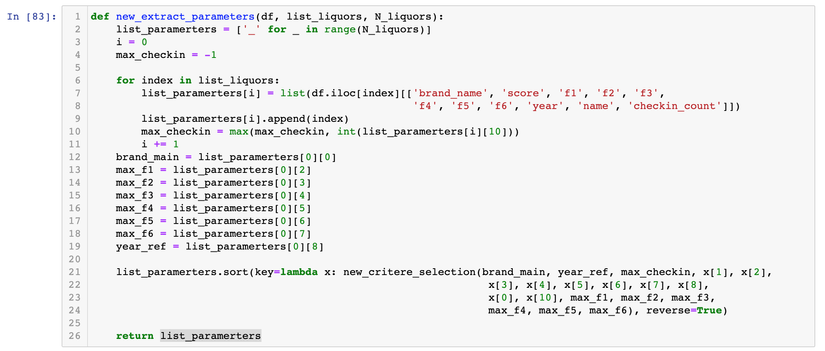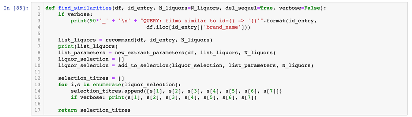 Sử dụng công thức này chúng ta có thể chọn ra Top N các liquor có độ similarity lớn nhất về tags. Cách làm này còn có 1 tên gọi khác là bag_of_word. Giờ cùng xem code nhé:
