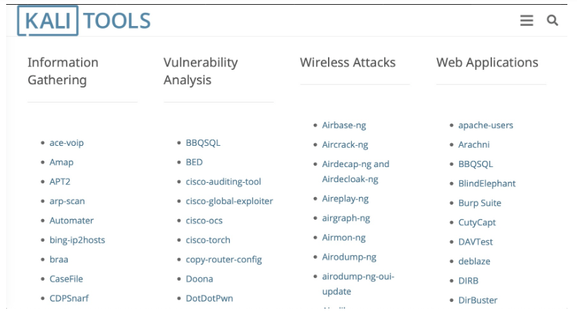 Trong số những công cụ hữu ích mà bạn sẽ tìm thấy ở đây để thu thập thông tin nguồn mở maà các nhà nghiên cứu yêu thích như Nmap và Recon-ng. Công cụ Nmap cho phép bạn xác định IP, nói và xác định máy chủ nào khả dụng, dịch vụ nào máy chủ đó cung cấp, hệ điều hành họ chạy, tường lửa nào đang sử dụng và nhiều chi tiết khác.