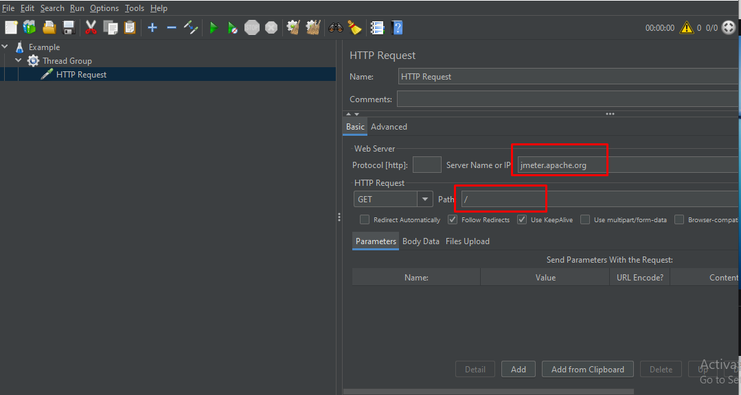 Bước 3: Ở đây mình dùng trang web http://jmeter.apache.org để test. Và ở bước này chúng ta điền thông tin trang web