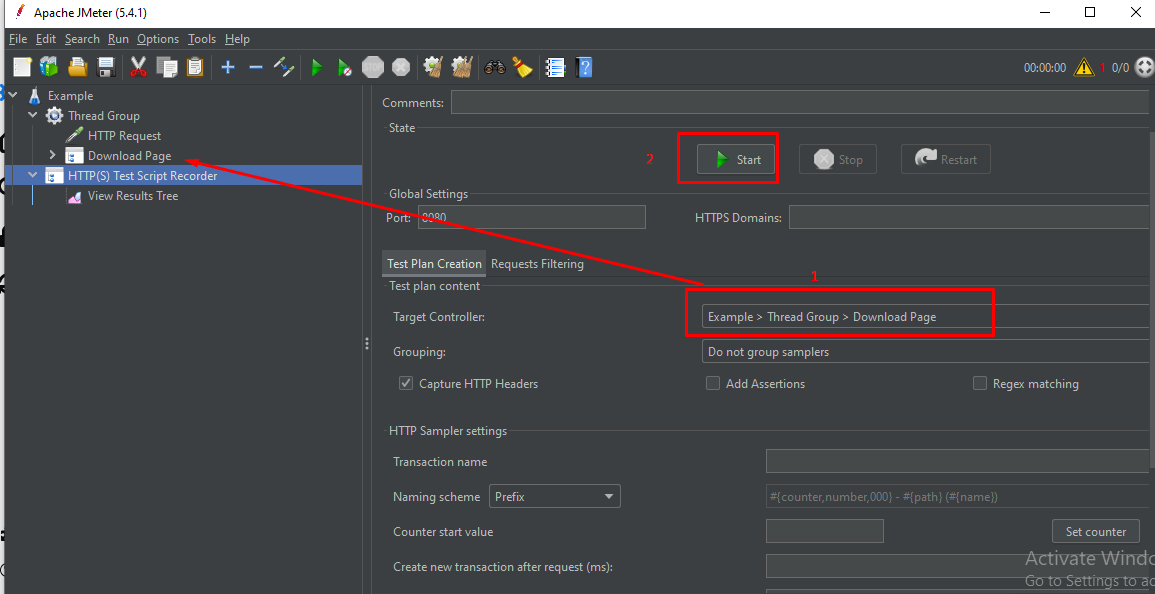 Ở đây mình test cho trang http://jmeter.apache.org và muốn lấy recorde lại các request của phần Download