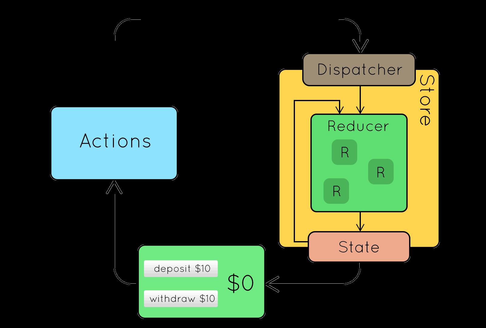 Các bạn sẽ không thể thay đổi trực tiếp state như viết trong component là setState() như trước. Muốn thay đổi state trên store các bạn cần gửi cho nó một action (là 1 object mô tả những gì xảy ra)