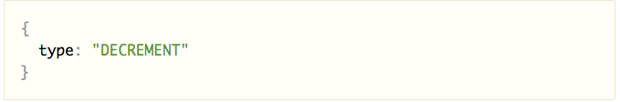 Như ta đã biết, Cách duy nhất để thay đổi State của ứng dụng là phát đi một Action(là một object mô tả những gì cần thực hiện). Trong ví dụ chúng ta có 2 Action chính đó là tăng và giảm count. Action có dạng như sau:
