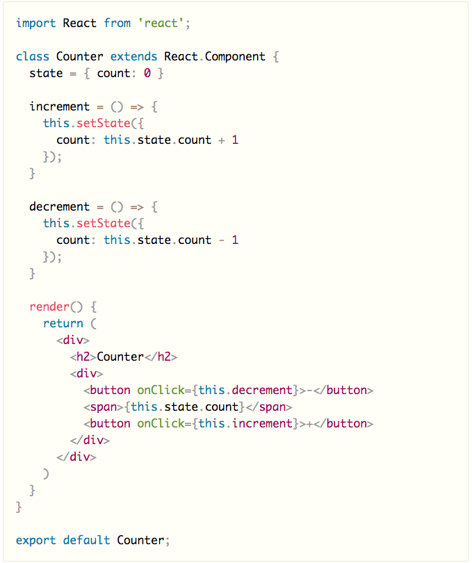 Sau khi cài đặt, chúng ta tạo một file Counter.js với code như sau:
