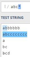 *giống như?tuy nhiên ký tự cuối có thể xuất hiện nhiều lần. Ví dụabc*sẽ tìm ra chuỗi có chứa "ab", "abc", "abccccccc" nhưng lại ko tìm được "a" hay "bc".