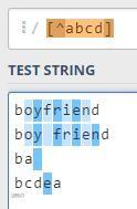 [^xyz]thêm dấu mũ vào trong[]sẽ mang ý nghĩa phủ định, ở đây là tìm ra chuỗi KHÔNG chứa ký tự x và y và z.