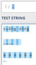 x{n}tìm được chuỗi x lặp lại n lần (n > 0). Ví dụa{3}sẽ tìm chuỗi có đúng 3 chữ a liền nhau.