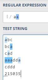 +tìm ra chuỗi có chứa 1 hoặc nhiều ký tự liên tiếp. Ví dụa+sẽ tìm được chuỗi có 1 chữ a hoặc nhiều chữ a liền nhau.
