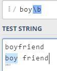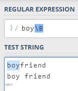 \b(viết thường) tìm chuỗi có chứa NGUYÊN VĂN ký tự đứng trước nó. Ví dụ: boy\b sẽ tìm ra chuỗi "boy friend" nhưng sẽ không tìm được chuỗi "boyfriend".