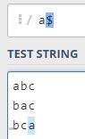 x$ngược với^, nó sẽ tìm ra ký tự/chuỗi ký tự đứng cuối trong 1 chuỗi. Ví dụ:a$sẽ tìm ra ký tự a đứng cuối trong chuỗi, tức là chuỗi "bca" thì tìm được nhưng chuỗi "bac". "abc" thì không,