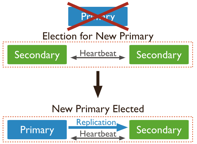 - Khi một primary không hoạt động một secondary sẽ được bầu lên làm primary của cả replica set.