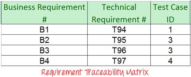 Nói cách khác, đó là một tài liệu ánh xạ và theo dõi yêu cầu của người dùng với các test cases. Mục đích chính của Requirement Traceability Matrix là để thấy rằng tất cả các test cases được đảm bảo không có chức năng nào bị bỏ lỡ trong khi thực hiện kiểm thử phần mềm.