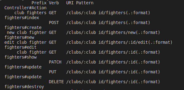Done! Vậy là Rails vẫn tạo ra đầy đủ các routes theo chuẩn RESTful, và nó sẽ có thêm tiền tố là clubs/:club_id đúng những gì chúng ta mong muốn.