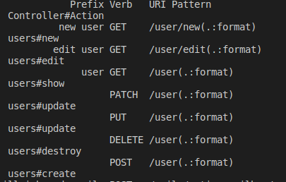 Kết quả rails routes.