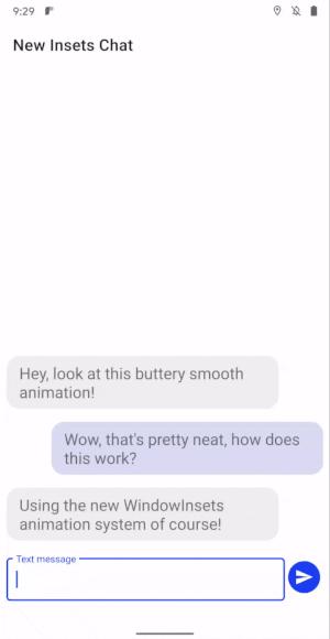 API mới WindowInsetsAnimationController sẽ làm nhiệm vụ đồng bộ hóa nội dung ứng dụng của bạn với IME (soft keyboard), thao tác ẩn hiện bàn phím mượt mà hơn, không bị giật như trước nữa mang lại trải nghiệm người dùng trực quan hơn. Đây cũng là một cải tiến UX rất xịn đó. (Hình ảnh dưới)
